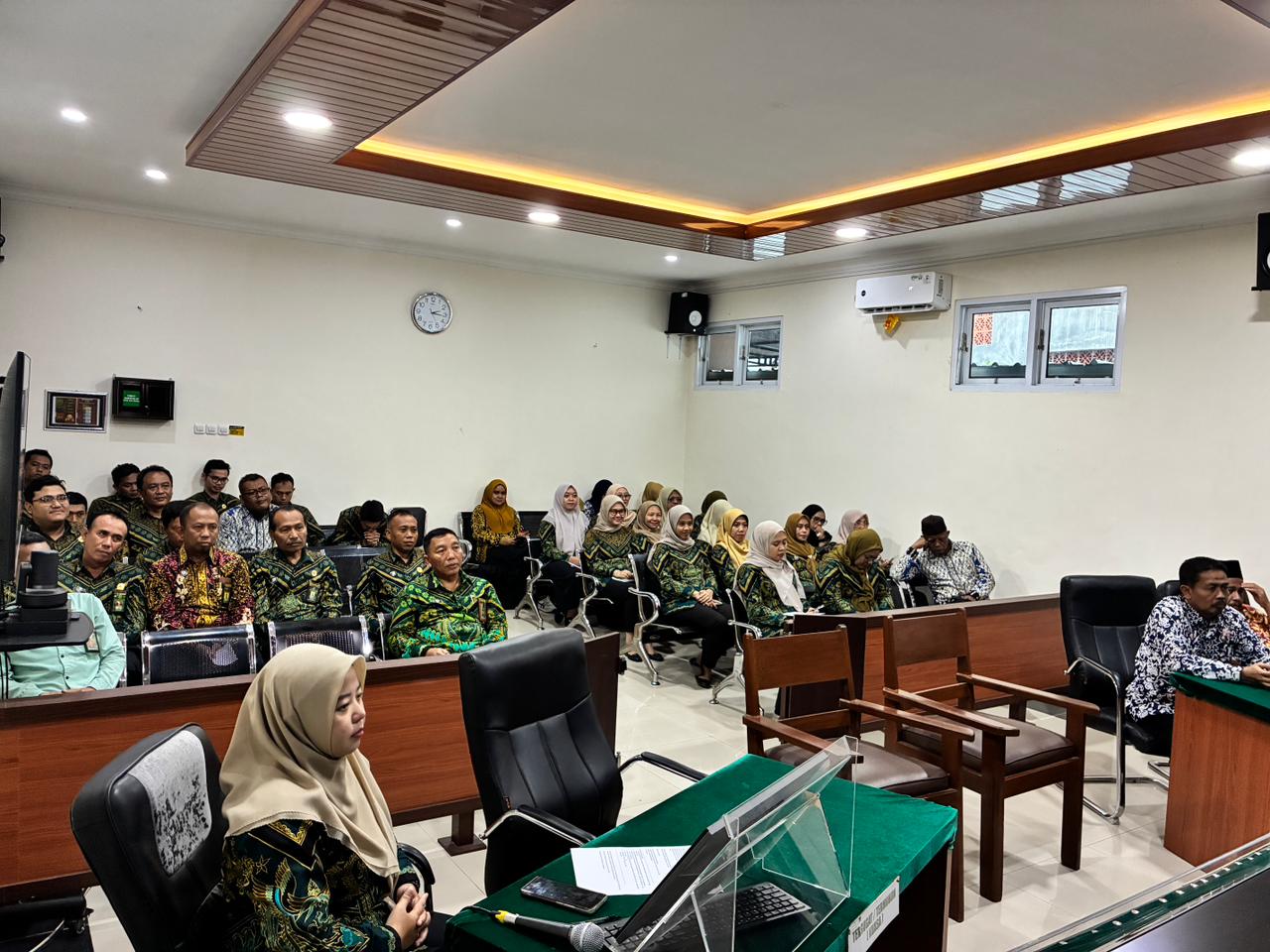 Pengadilan Agama (PA) Banyuwangi menggelar Rapat Dinas dan Pembinaan rutin untuk periode bulan Januari 2026. Kegiatan ini dilaksanakan pada hari Kamis, tanggal 29 Januari 2026, bertempat di Ruang Sidang utama. Seluruh pimpinan, hakim, serta pegawai fungsional dan struktural hadir mengikuti jalannya rapat tersebut dengan penuh antusias. Acara ini bertujuan untuk mengevaluasi kinerja instansi sekaligus menyusun strategi kerja untuk bulan-bulan mendatang. Pelaksanaan rapat menjadi agenda pembuka yang penting dalam mengawali program kerja di awal tahun ini.